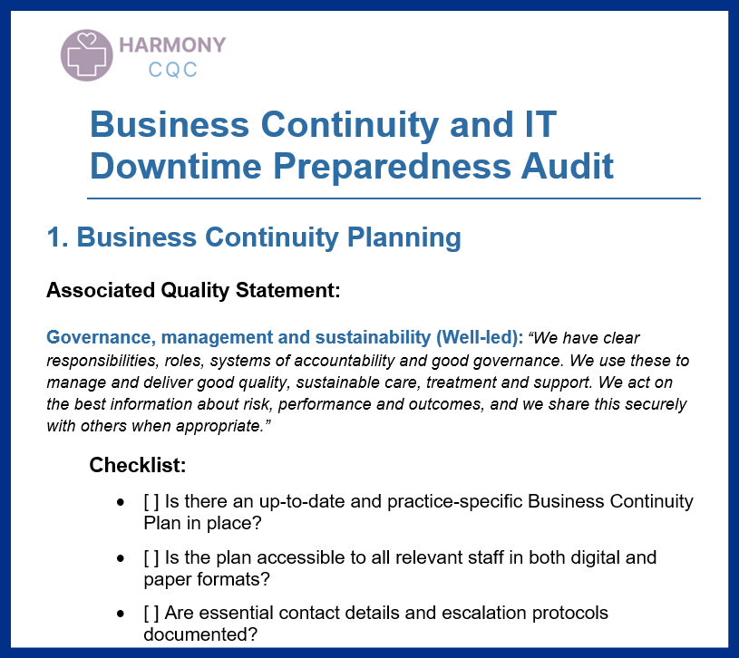 This week’s audit supports you to explore this exact area: how well you’re prepared to keep people safe and care flowing when the systems stop working.