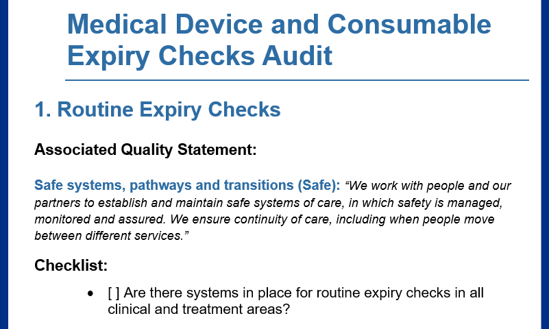 Out-of-date materials, especially in high risk environments like emergency drugs or diagnostic testing, pose a serious risk. They can also undermine patient trust and reflect poorly on the team’s wider culture of safety.