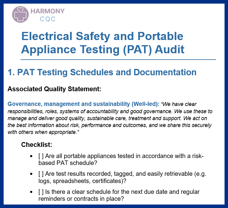While rare, electrical faults can cause significant disruption, pose fire hazards, and even result in harm to patients or staff. The CQC doesn’t just expect practices to have working equipment — they expect that the systems behind the scenes (like PAT testing schedules, fault logging, and safe storage) are robust, risk-assessed, and up to date.