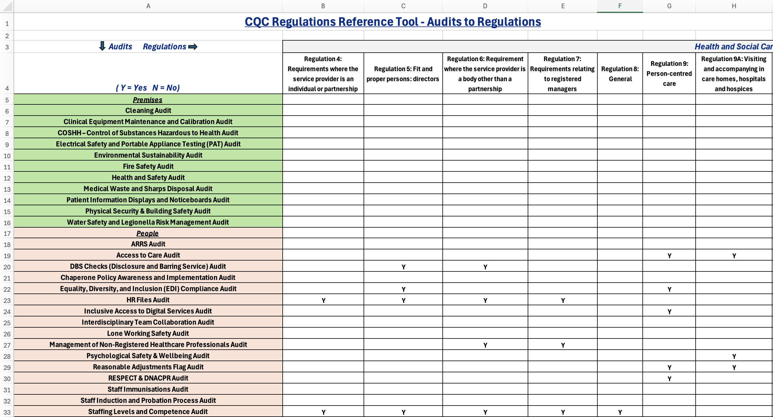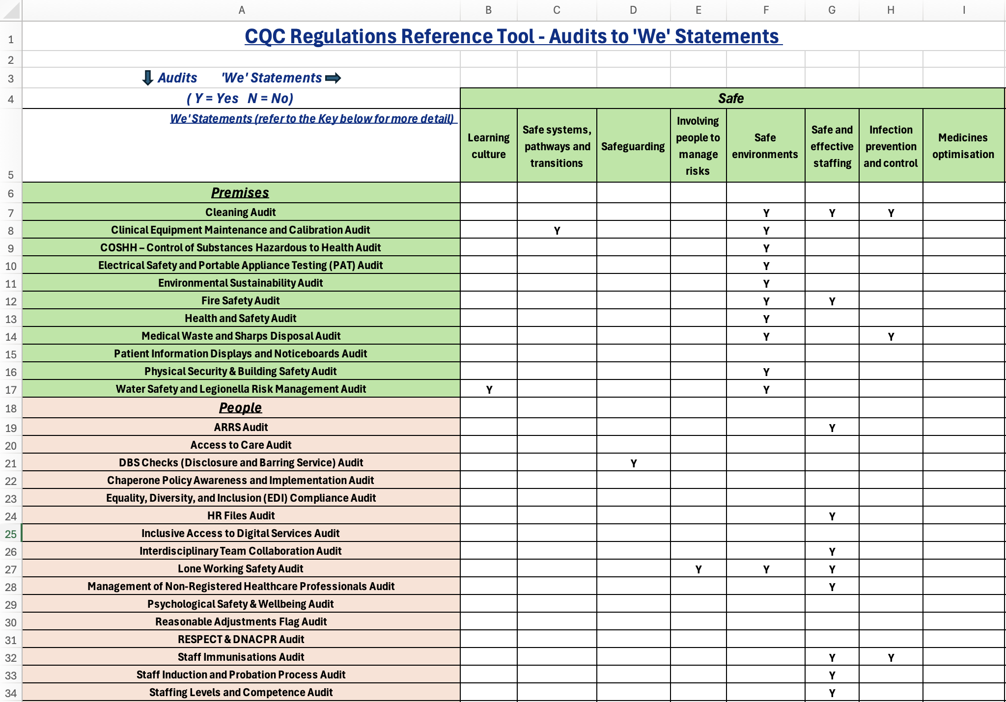 It’s a central hub that maps every audit, policy, and governance process to the exact regulation and CQC quality statement it supports. Whether you’re preparing for an inspection or building a culture of everyday compliance, this tool shows you exactly what good looks like — and why.