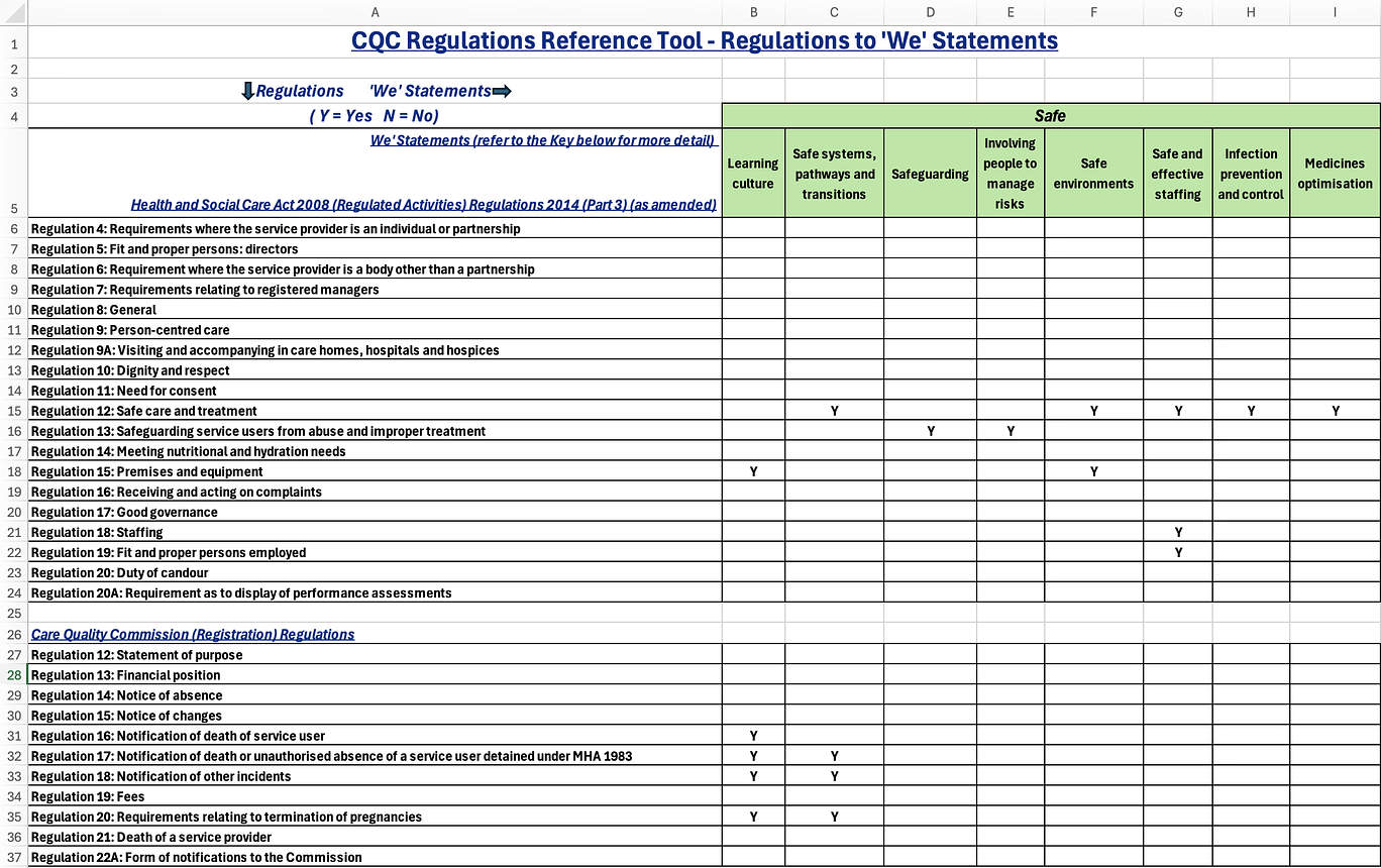 That’s why we’re proud to announce the upcoming launch of the Compliance Reference Tool — a structured, practical resource created to help you and your team stay aligned with the Health and Social Care Act 2008 (Regulated Activities) Regulations, the CQC (Registration) Regulations, and the Assessment Framework.
