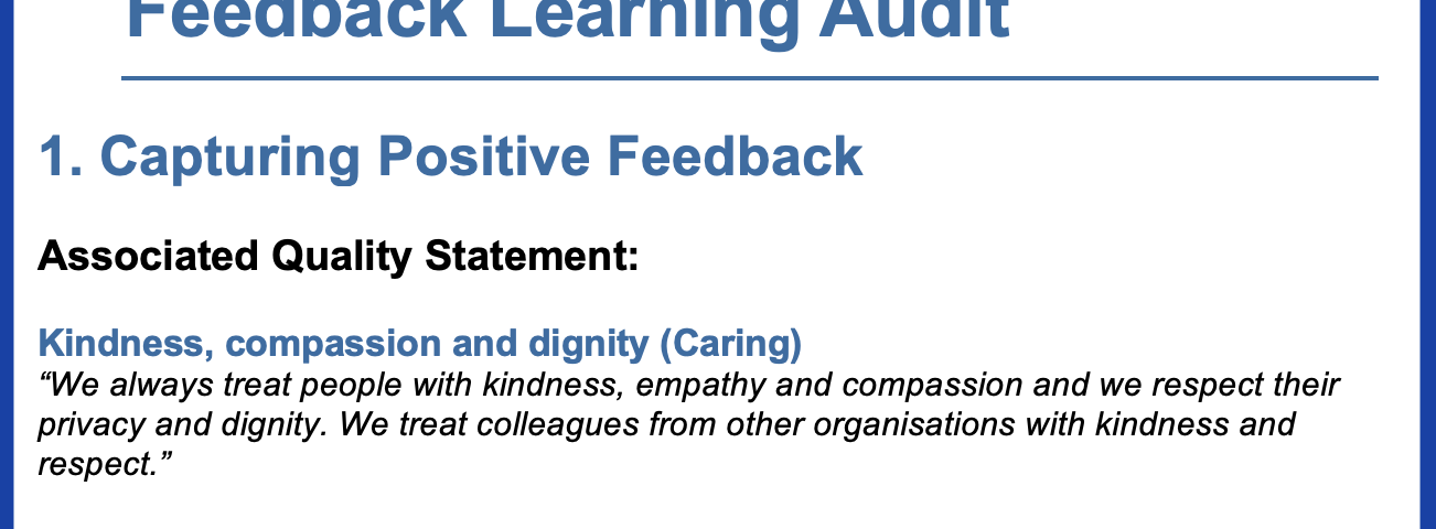 The aim is to ensure that compliments are not overlooked but instead built into governance and improvement processes, alongside complaints and incidents.