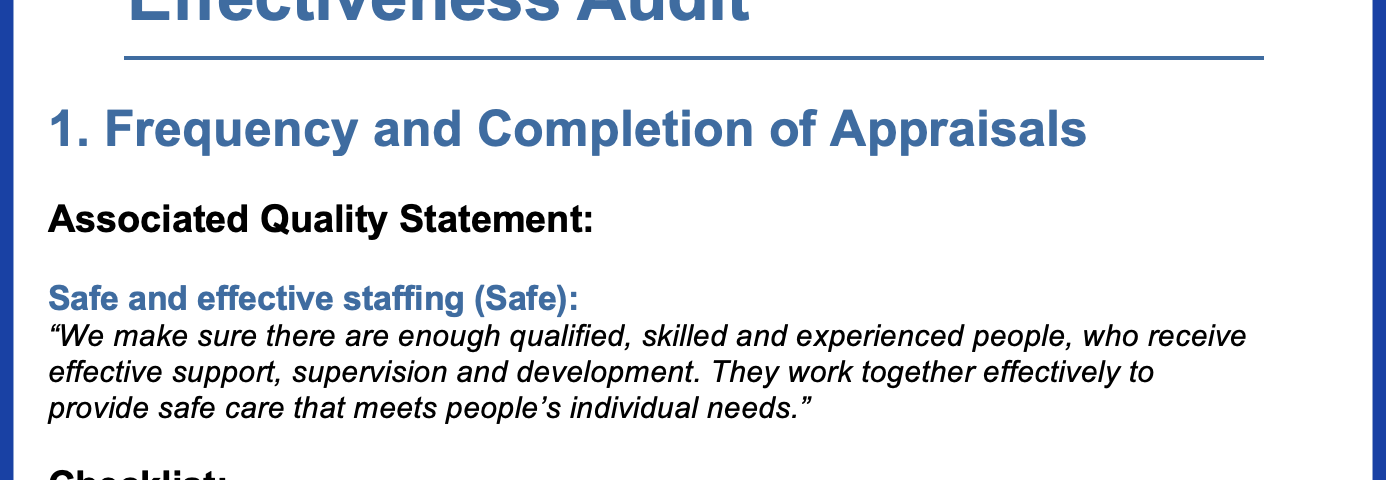 - Regulatory assurance: CQC inspectors expect to see evidence of regular, meaningful appraisals and how they link to governance and workforce planning.