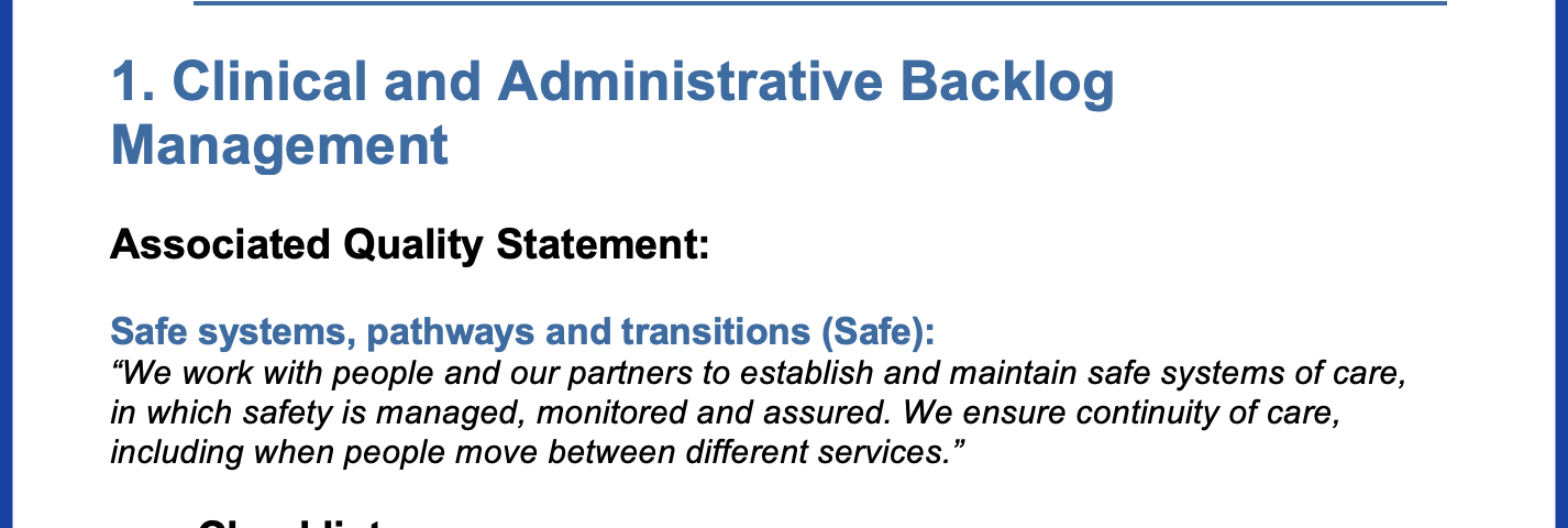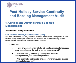 This audit helps practices review their return-to-service processes, identify risks that may have emerged over the holiday period, and put measures in place to improve safety, communication, and resilience.