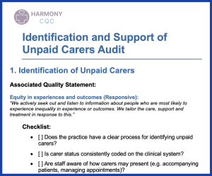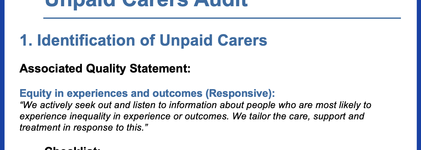 This audit focuses on Identification and Support of Unpaid Carers, aligning with the following CQC “We” statements: