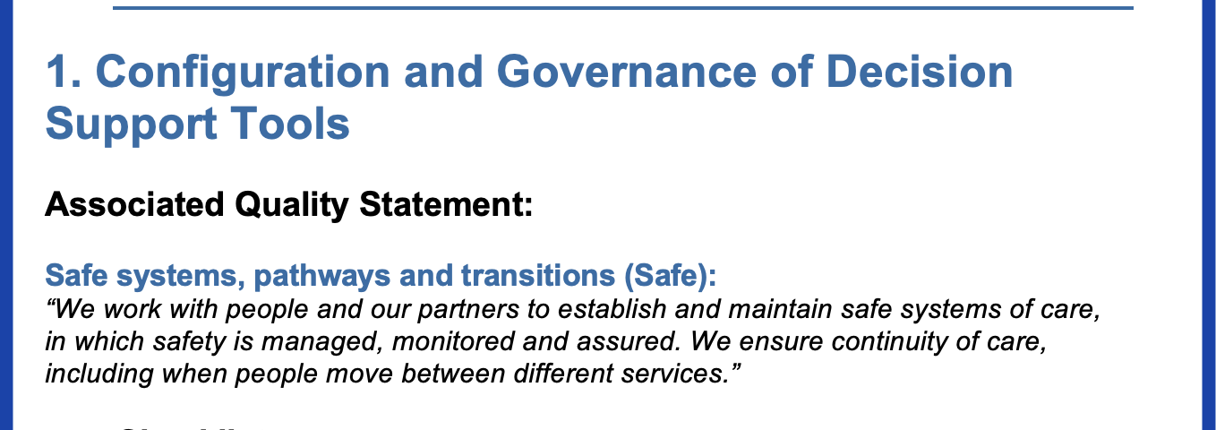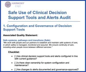 This audit focuses on the Safe Use of Clinical Decision Support Tools and Alerts, aligning with the following CQC “We” statements: