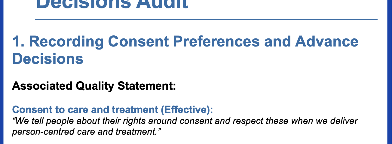 This audit focuses on the Management of Patient Consent Preferences and Advance Decisions, aligning with the following CQC “We” statements: